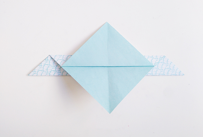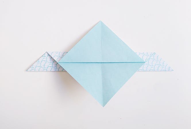 Pour votre oiseau en origami, choisissez un joli papier coloré. Selon le papier choisi, l'effet sera totalement différent ! Nous avons choisi un papier avec un côté à motif bleu et blanc, et un côté uni bleu ciel.