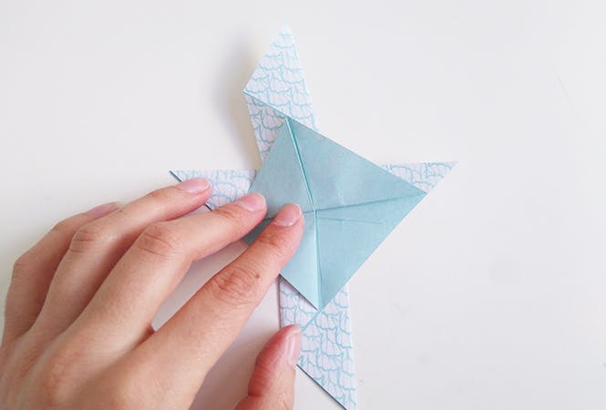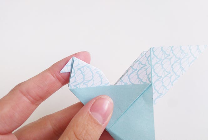 Et enfin pliez la pointe de gauche pour faire le bec.